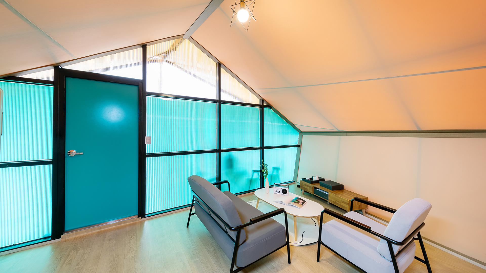 클라우드글램핑이 준비한 2인이 머물 수 있는 안락한 객실입니다. 다양한 호텔식 어메니티와 와이파이, 더블침대를 구비하였고 테라스에서는 바베큐를 즐기실 수 있습니다.