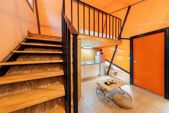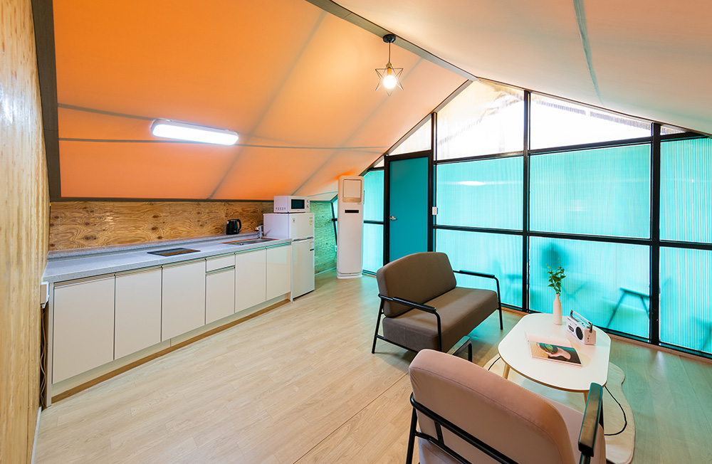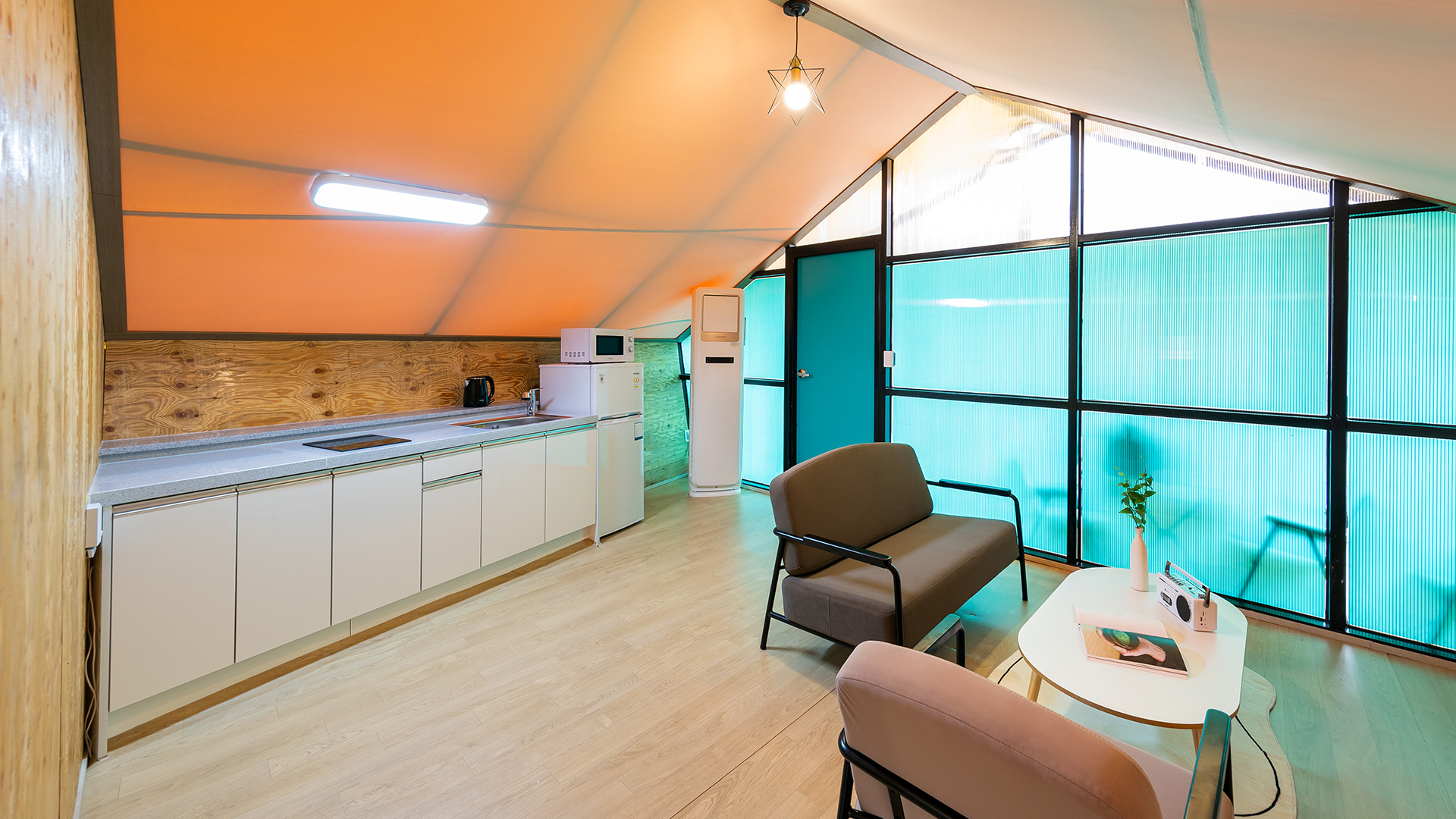 클라우드글램핑이 준비한 2~4인이 머물기에 적당한 객실입니다. 다양한 호텔식 어메니티와 와이파이, 화장실, 더블침대를 구비하였고 테라스에서는 바베큐를 즐기실 수 있습니다.