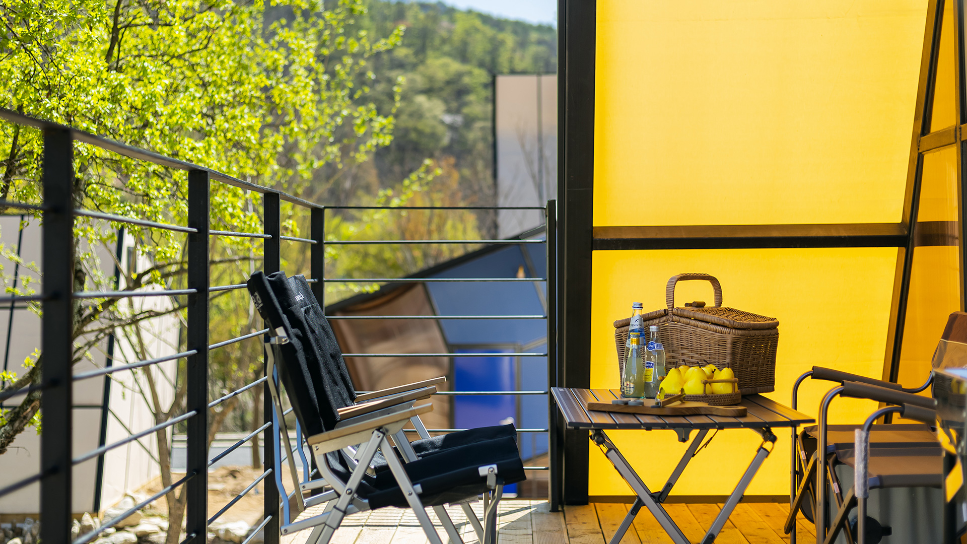 클라우드글램핑이 준비한 2인이 머물 수 있는 안락한 객실입니다. 다양한 호텔식 어메니티와 와이파이, 더블침대를 구비하였고 테라스에서는 바베큐를 즐기실 수 있습니다.