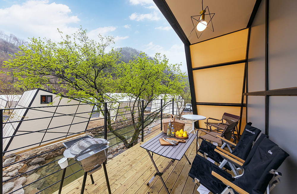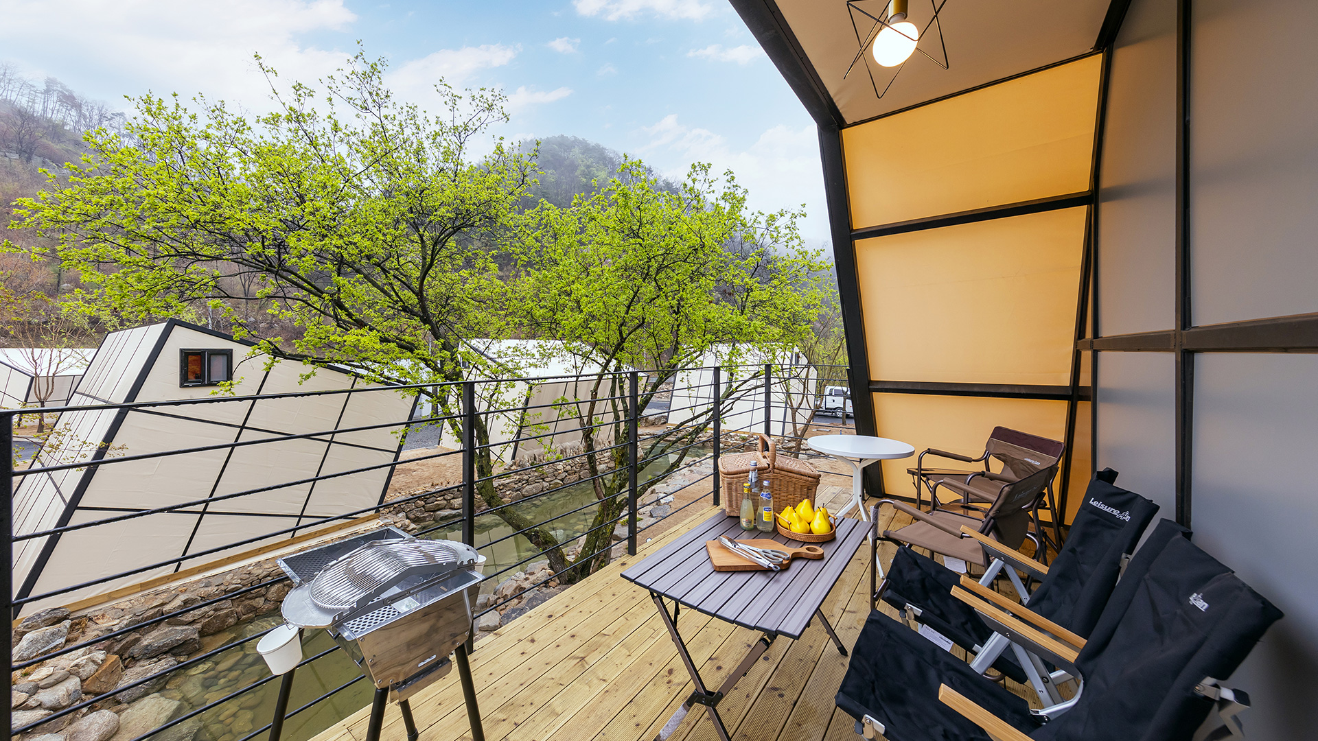 클라우드글램핑이 준비한 2~4인이 머물기에 적당한 객실입니다. 다양한 호텔식 어메니티와 와이파이, 화장실, 더블침대를 구비하였고 테라스에서는 바베큐를 즐기실 수 있습니다.