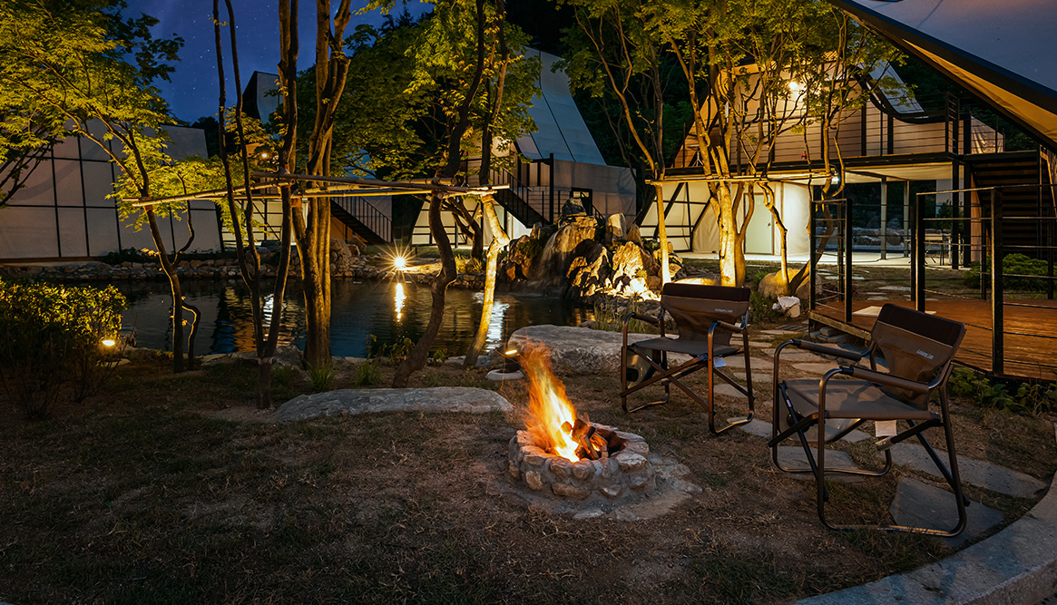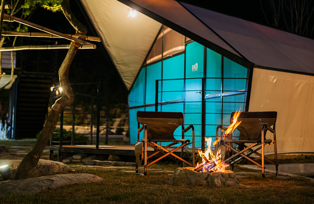 클라우드 글램핑에서 아름답게 피어오르는 불꽃을 감상하며 낭만적인 글램핑을 완성해보세요!