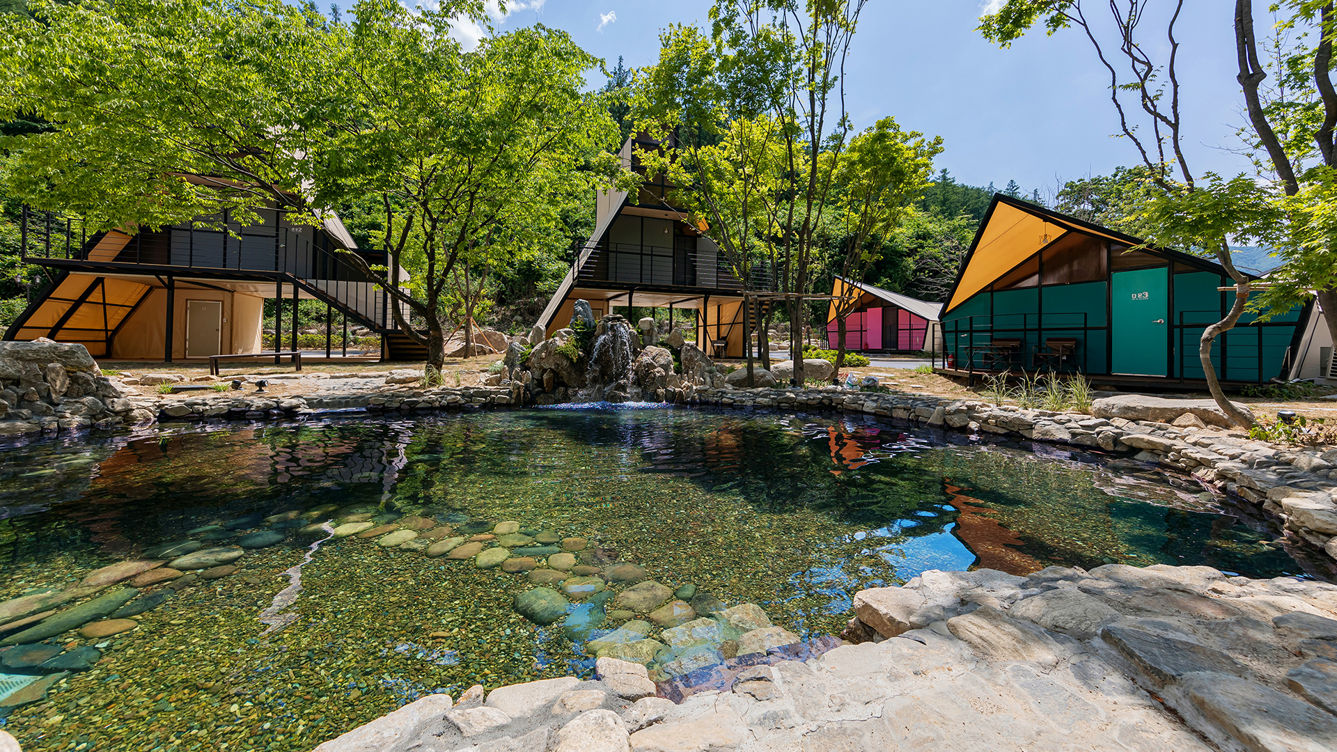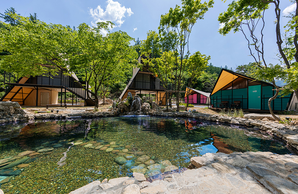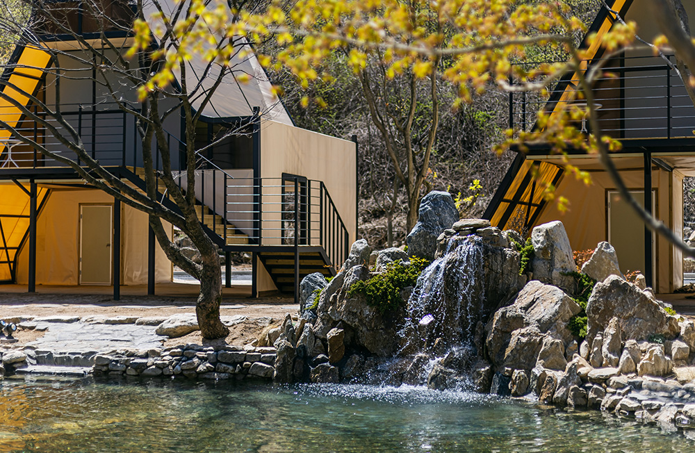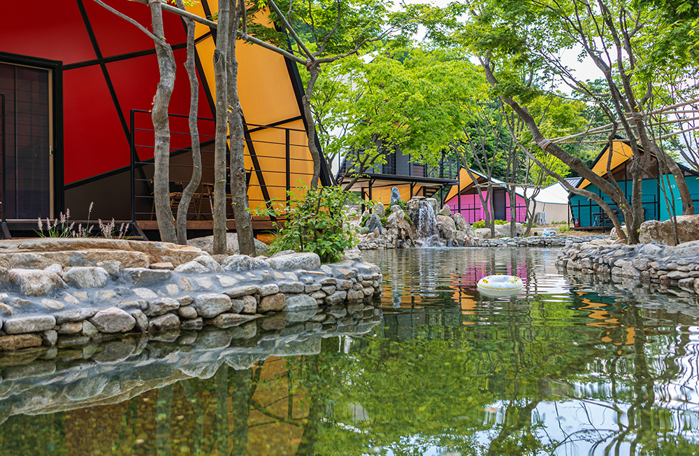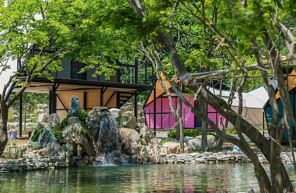 클라우드 글램핑 주변은 숲속과 함께하는 4시간짜리 트레킹 코스와 시원한 계곡이 있습니다. 싱그러운 자연에 둘러싸여 여유로운 힐링을 즐겨보세요.