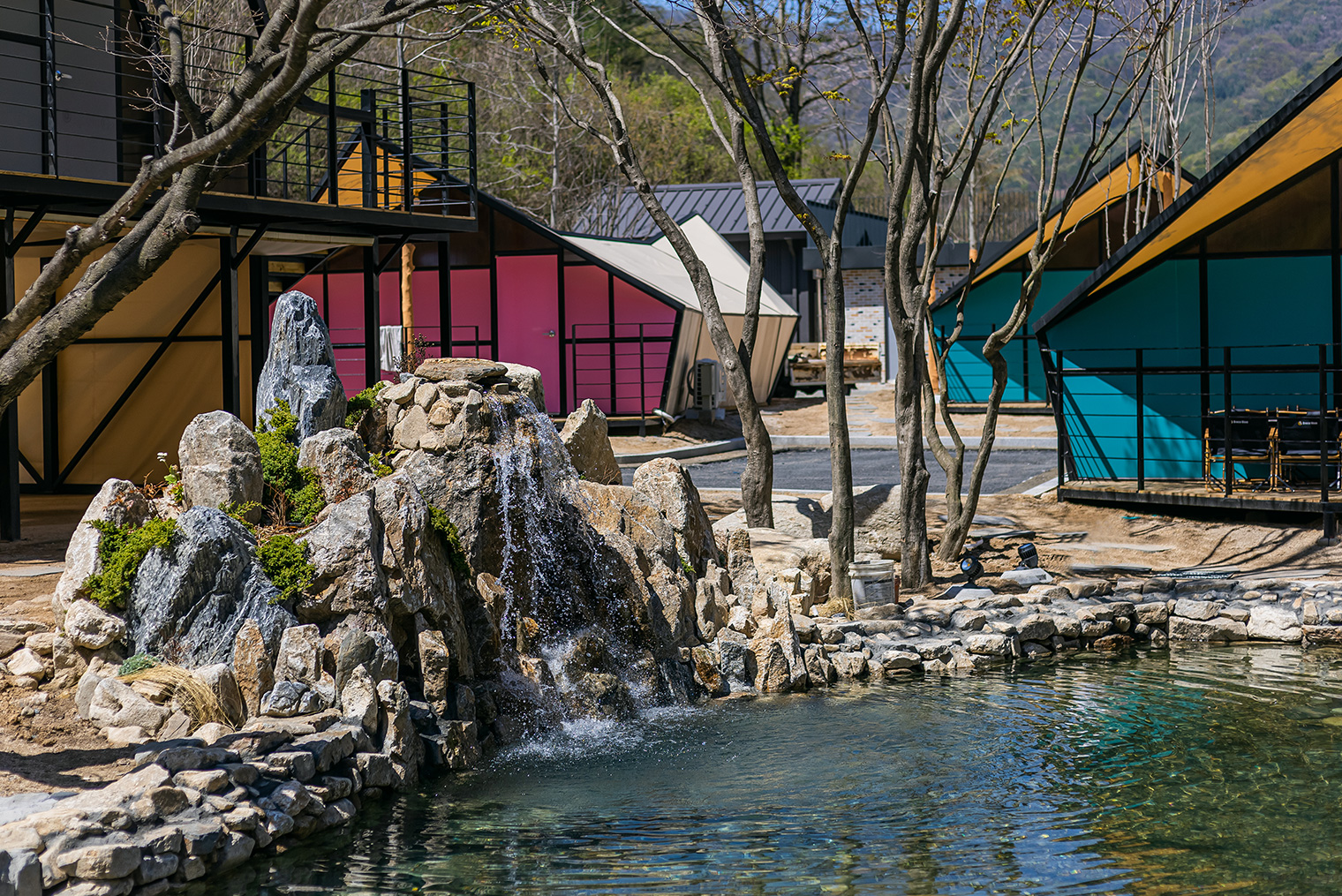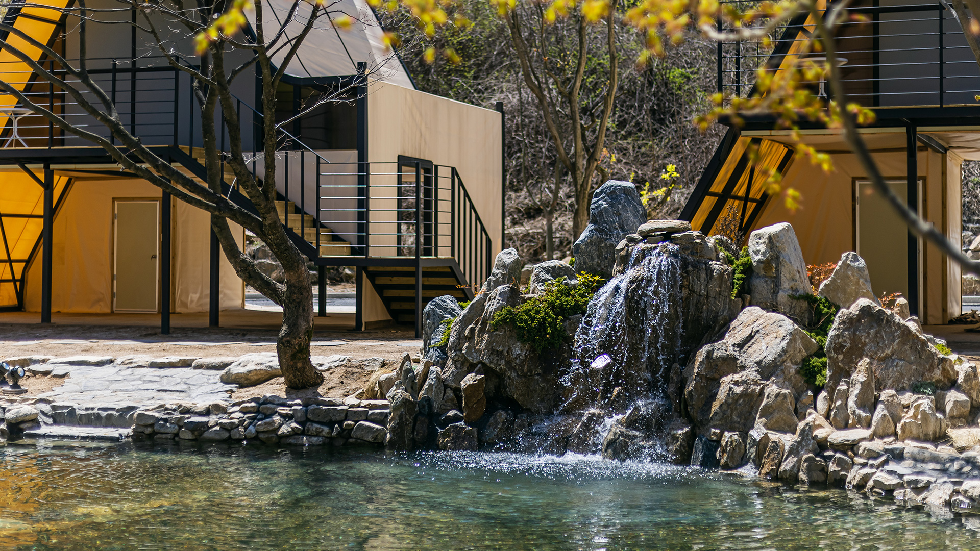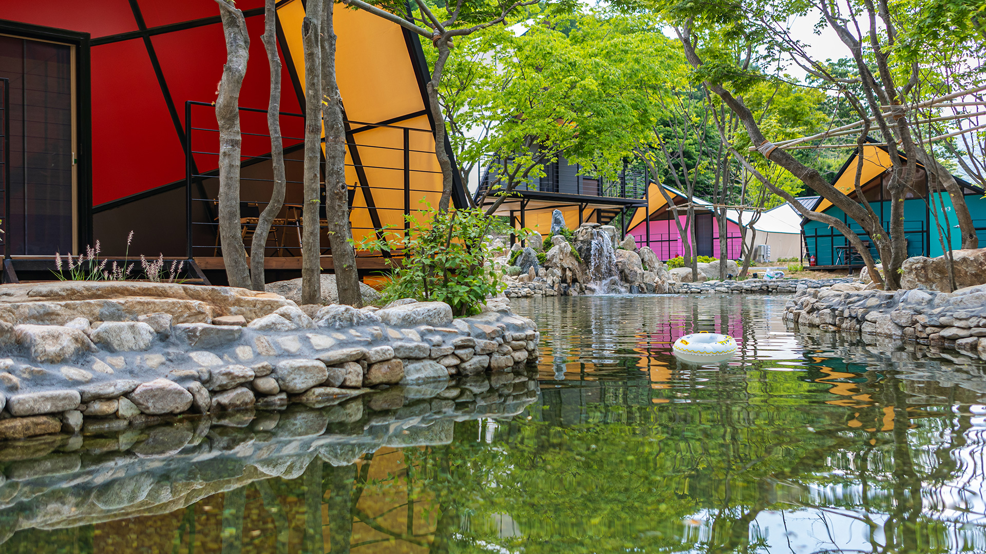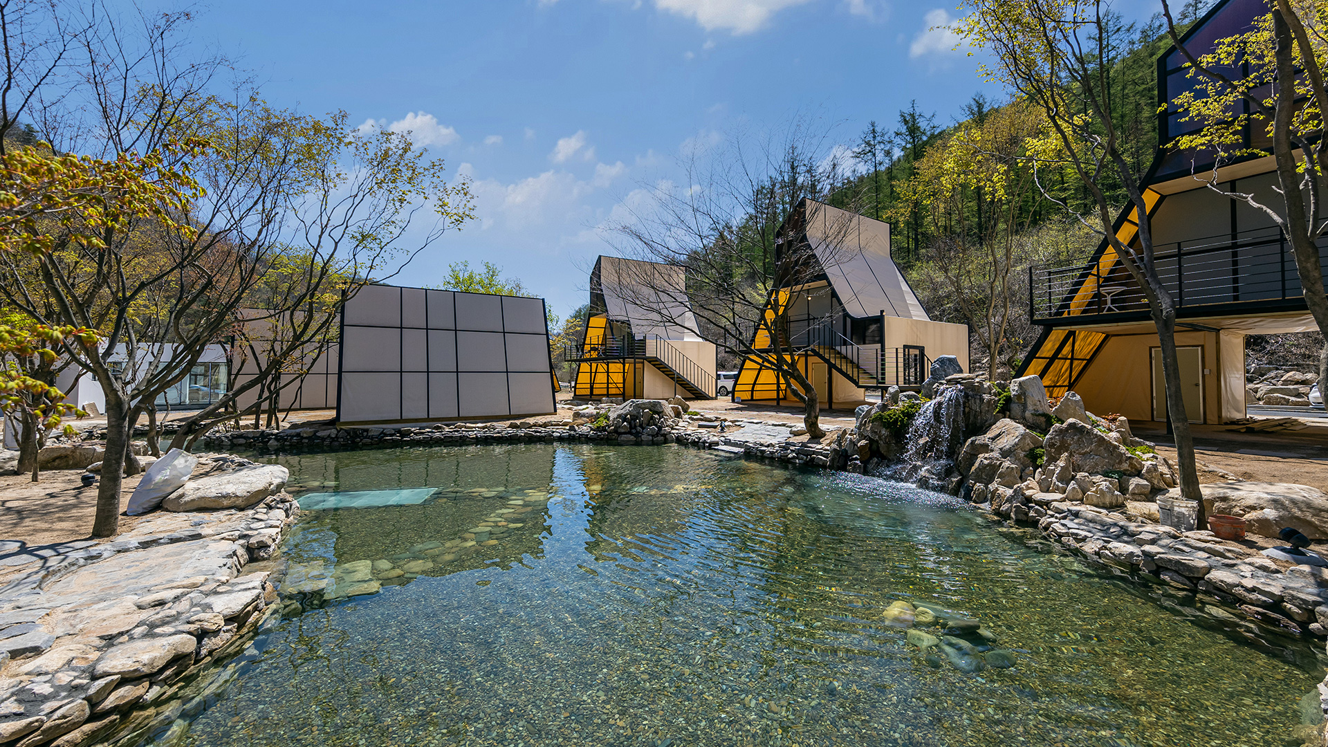 클라우드 글램핑 주변은 숲속과 함께하는 4시간짜리 트레킹 코스와 시원한 계곡이 있습니다. 싱그러운 자연에 둘러싸여 여유로운 힐링을 즐겨보세요.