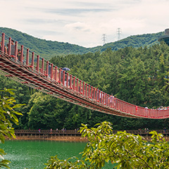 청풍호반 수면 위에서 제천10경 중 하나인 옥순봉을 가장 가까이에 온몸으로 느낄 수 있는 옥순봉 출렁다리는 2021년 10월 22일 개장하였으며, 길이 222m, 너비 1.5m의 연결다리 및 408m 길이의 생태탐방 데크로드와 야자매트로 이루어진 트래킹길까지 더하여 호반과 옥순봉을 둘러볼 수 있도록 조성하였습니다. 대한민국 명승 제48호이자, 제천10경 중 제8경 옥순봉의 수려하고 힘찬 봉우리의 자태를 옥순봉 출렁다리에서 온몸으로 느끼며 만나보세요.